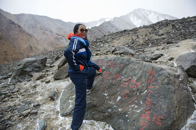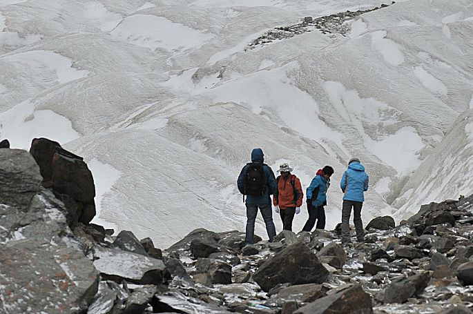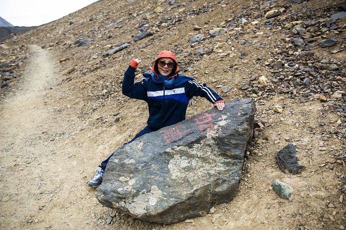 路越来越难行,但离冰川也越来越近。看石头上写着:“坚持!你是一个意志顽强的人!”这一句话激励了每一位攀登者,我就是其中的一个!