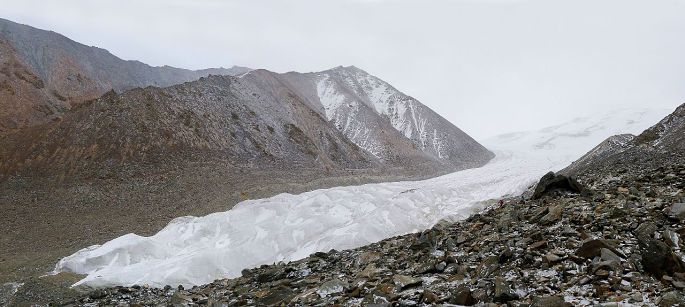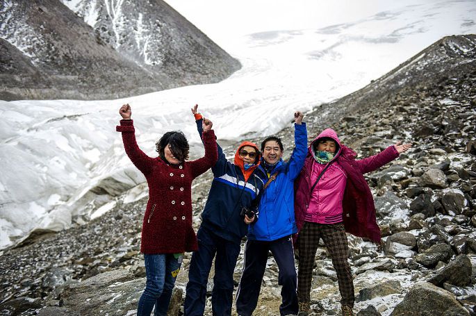 我们遥遥领先,终于到达了冰川之巅。气势磅礴的冰川完完全全呈现在眼前,