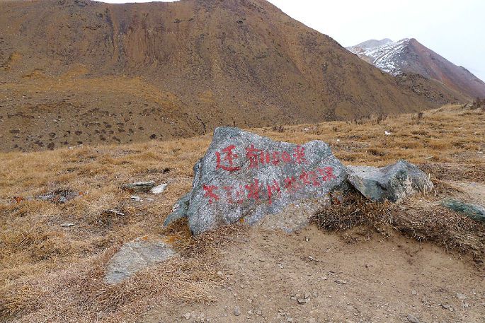 回头望,远远的看见吴姐和燕子在缓缓的攀登,还有两位因不适而返。我庆幸自己没有高反,并且名列前茅,这得感谢亚父为我减轻了负担。