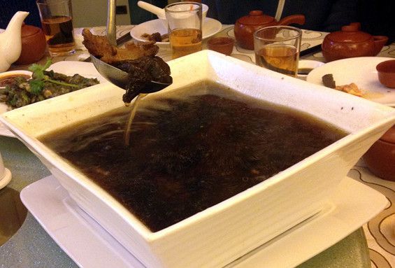 从左到右:龙凤功夫茶(鸡和蛇哦,汤很清淡)、冷盘(有土笋冻、鱿鱼、薄饼、萝卜等)、韭菜盒子(因为不爱韭菜,这个不予评价)。