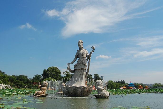玄武湖古称桑泊、秣陵湖、后湖、昆明湖等。相传南朝刘宋年间,有黑龙出现,故称玄武湖。北宋时王安石实施新法,废湖为田,从此玄武湖消失。明代朱元璋高筑墙,玄武湖疏浚恢复,成为天然护城河。现玄武湖公园面积476公顷,其中七成以上是水域,环洲、樱洲、梁洲、翠洲、菱洲五块绿岛镶嵌水中。