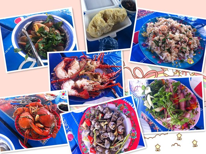 上午玩水休闲就到了中午,一行人打车到海鲜排挡附近觅食。虽然网络上很多人推荐“幸福姐”,但上个团朋友忠告说的价格挺贵,味道也就那样。于是找了另外一家餐馆,其实这一片海鲜排挡大致的价格都差不多,基本都是做外国游人的生意,也都不算便宜,比比划划的用翻译软件点了些海鲜,基本都是原汁原味的做法。很新鲜,炒饭和鱼片粥特别实在,鱼片粥的鱼肉比粥还要多~~~~大概人均200人民币的样子。