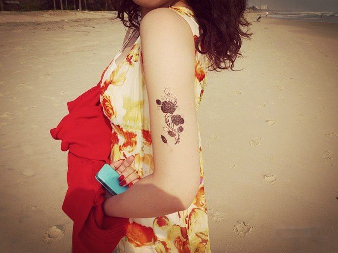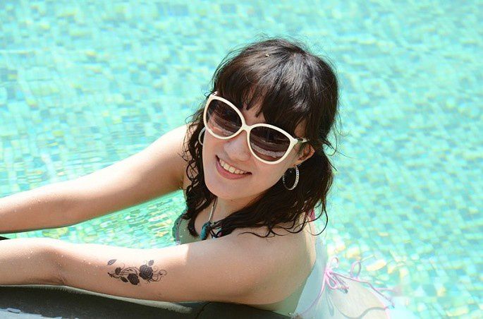 给我美丽的纹身露个脸,贴的,效果很好,三天都不掉,受到全团人欢迎,最后各位女士、小孩人手一贴。