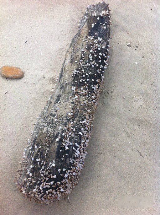 一个被海水冲上沙滩的礁木,上面的贝壳全都是活的 !!!有密集恐惧症的人看了估计有点害怕,但我看来还觉得挺新鲜 - - ~