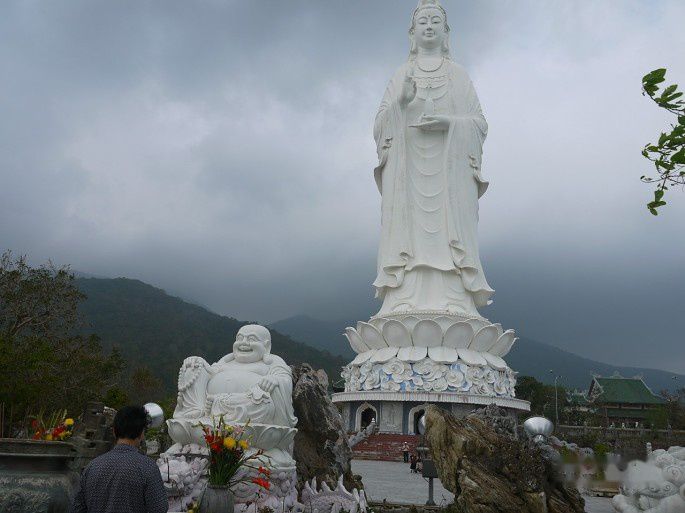 山茶半岛上坐落着高达69米的亚洲最大观音雕像,这是山茶半岛的标志性建筑,整个观音像纯白而洁美,无论在哪一个角度抬头看,似乎观音都与之对视。