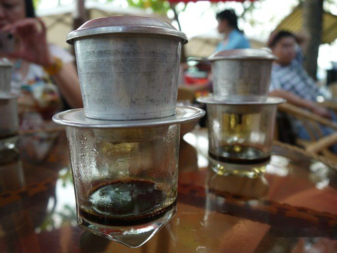 越南特有的滴漏咖啡,水经过咖啡粉从滴漏壶里一滴滴落下,加上炼乳和冰块,就成为了一杯滴漏咖啡,味道算不上醇厚,但还算香浓,适合下午时光的消磨。