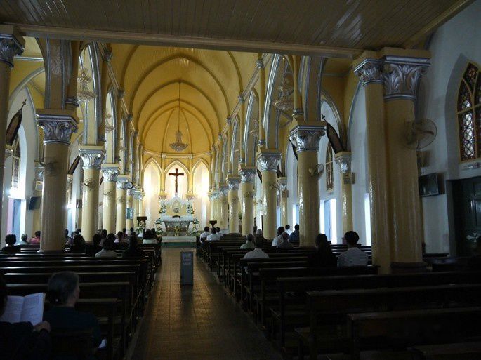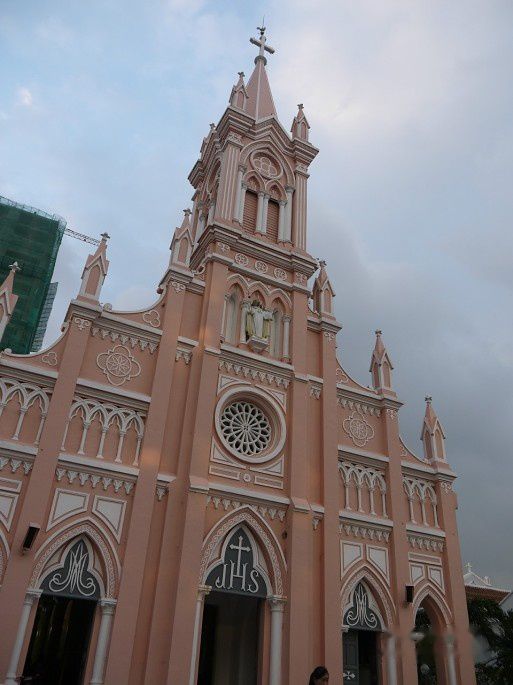 咖啡时光后是粉红教堂的到此一游,建于1923年,法国统治时期的天主教堂,以其高大钟塔上的风向标为标志,又被称作雄鸡教堂,是越南中部最大的西方教堂。中世纪风格的彩绘大玻璃窗与粉红色的外观相映成趣,转一圈,拍照,对它的文化没什么了解,因此也没什么特别的感触。