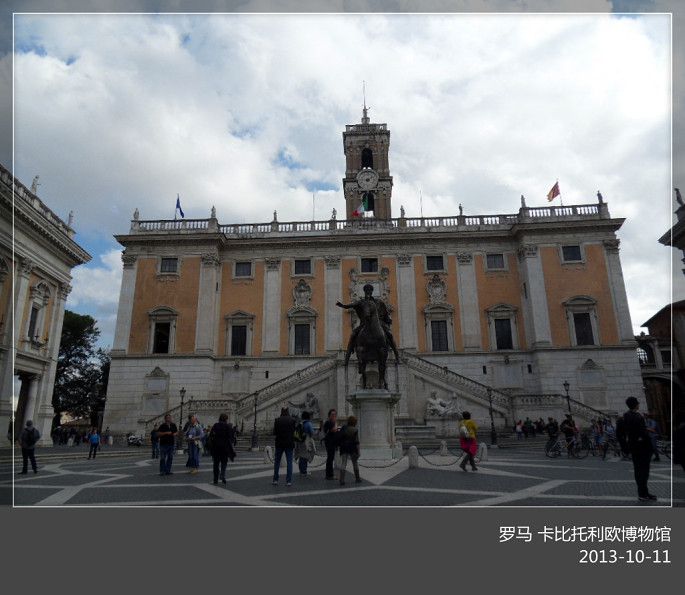古罗马广场的旁边就是卡比托利欧博物馆,进入博物馆,你可以全景看到古罗马广场。包括环绕中央梯形广场的三座建筑,由米开朗琪罗在1536年规划,工程经过400多年才全部完成。