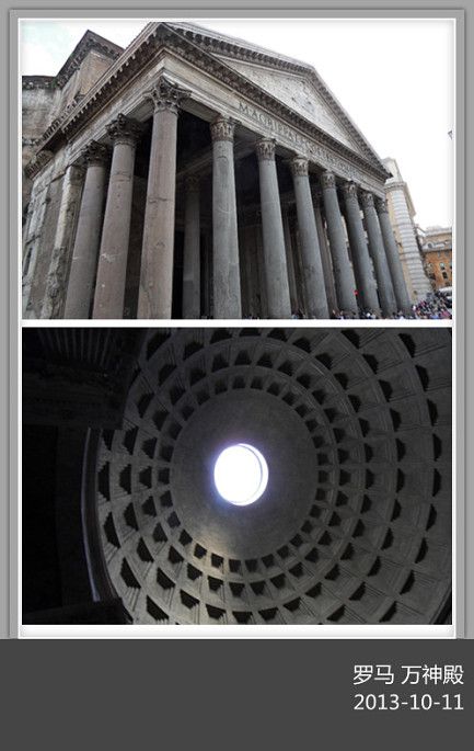 万神殿是古罗马建筑,但后来欧洲是基督教的天下,这个神殿就变成了一个教堂,这座神殿是为了纪念罗马皇帝屋大维打败他的前任安东尼和他的红颜埃及艳后,埃及艳后还勾引了凯撒,但屋大维不上当。最有名的是它的穹顶,后来的圣马可大教堂和圣母百花大教堂都以此为蓝本,具体介绍可以参考big_michael所著的《双城记——罗马佛罗伦萨精读14天(超详解26教堂+24名胜古迹+7博物馆+蒂沃利+庞贝)》之