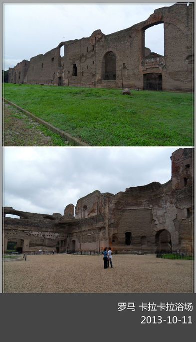 10月12日,是我回国的日子,上午还有点时间,我便跑到卡拉卡拉浴场去玩,虽然是个浴场,但现在呈现出的面貌跟大多数古罗马建筑一样,是残存的遗迹,但如果你进到里面,一定能从这些高大破损的残墙中领略其建筑的伟大。