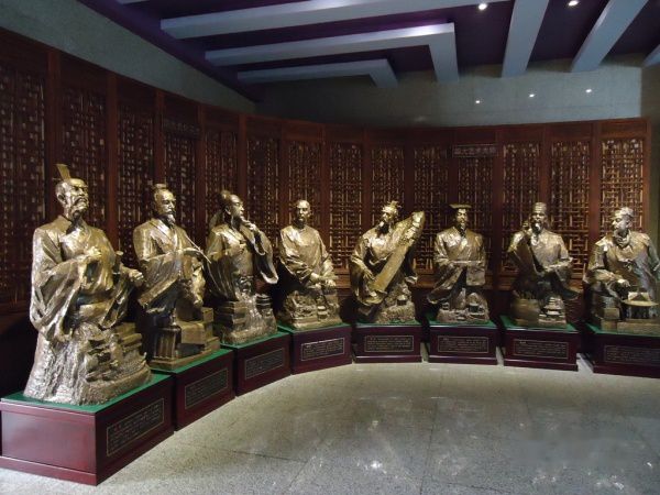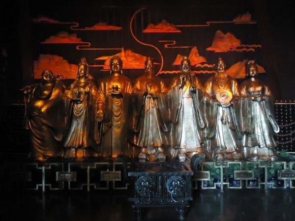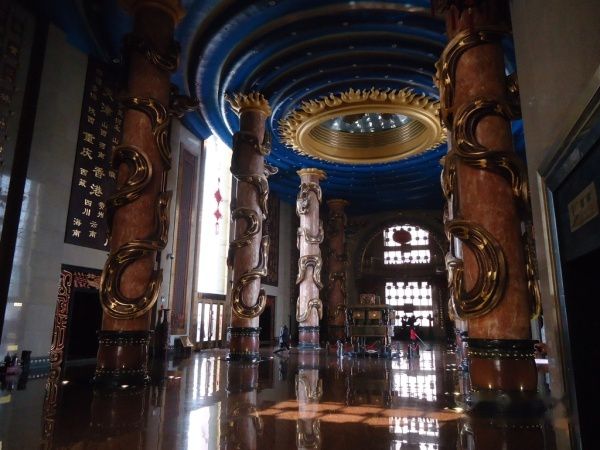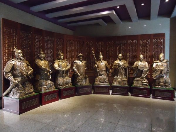 重活大厅两侧的四个殿堂,分别陈列的是中华民族四大信仰铜雕,“中华祖坛”陈列着燧人、伏羲、女娲、炎帝、黄帝、帝尧、帝舜的青铜雕像,“中华圣坛”陈列着老子,孔子、孟子、墨子、荀子、孙子、韩非子等先秦诸子百家杰出代表的大型铜像,“中华教坛”陈列着道教元始天尊、灵宝天尊、道德天尊、王母娘娘和佛教释迦牟尼、观音菩萨、弥勒佛等宗教人物的大型铜像,“中华神坛”陈列着玉皇大帝、送子娘娘、妈祖、龙王、财神、土地爷、关老爷等被民间百姓尊为神灵的人物雕像。