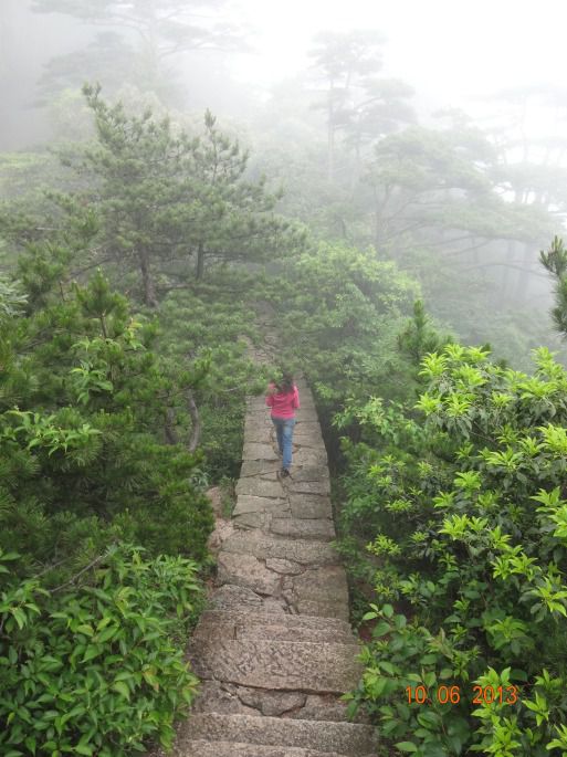一路上走走停停,速度并不快,于我这种体力的人而言是正好的。本来想着下午去看西海一、二环的,但看天气不是很给力的样子,所以上午我们还是安排了一个旅行团不去的地方,步仙桥。步仙桥是从白云宾馆边上往里走的,一路多是下行,可惜雾大,还是没看清真容,但人烟稀少,还真让大家好好地玩了下。因为西海大峡谷还在建设中,所以没有办法绕一圈,只能走回头路。辛苦呀,爬得头都痛了。不过人少,风偶尔吹开了雾,还可以照到些好景色。午饭在白云宾馆边上的美食广场用过了粽子、茶叶蛋,强忍着午睡的小虫子向光明顶进军。