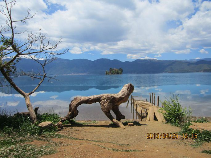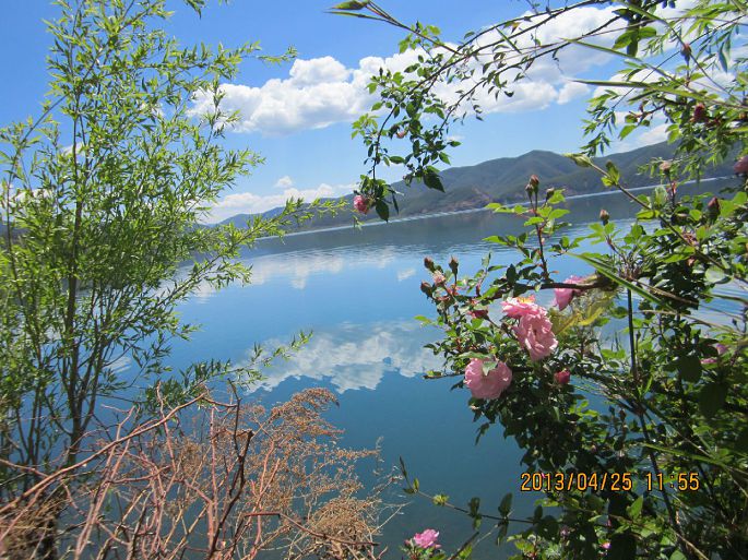 把下面这张照片拿给朋友看时,她摇摇头说,东西太多了,没有主题。虽然喜欢拍照,但绝对是菜鸟水平,偶尔能拍出一张满意的照片都会兴奋很久。拍的时候并没有想太多,只是被景色的颜色搭配迷住了,突然发现,最好的配色其实是源自大自然的。那美美的泸沽湖的四月啊!