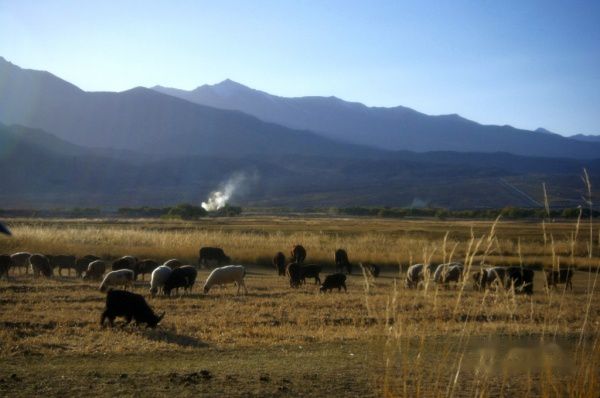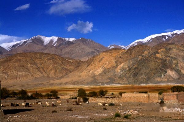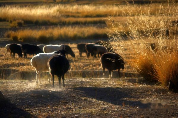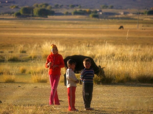过了喀拉库勒湖、慕士塔格山,经过塔合曼草原,下午五点多钟,高原的阳光变成了金黄色,牛羊星星点点撒在原野,塔吉克族人的房子、和古兰丹姆一样漂亮的妇女还有漂亮的小孩子出现在眼前,忍不住大声喊:停车!急忙下车,目标直指塔吉克族人家和牛羊。夕阳西下,余辉在冰山的包围中染红了高原,这是一幅非常美妙的图景,人与自然和谐地镶嵌在一幅画框里。如果说慕士塔格峰是一个冰幻的世界,那么这里就是一个人间乐园了,一片长满沙棘的林子把一条河流隐蔽其中,一个塔吉克人村庄静静地座落于冰山之下,不落的太阳永远沐浴着这个高原的民族。我这个伪摄影者,彻底被这美丽的景致所打动,我相信这是人间的世外桃园。