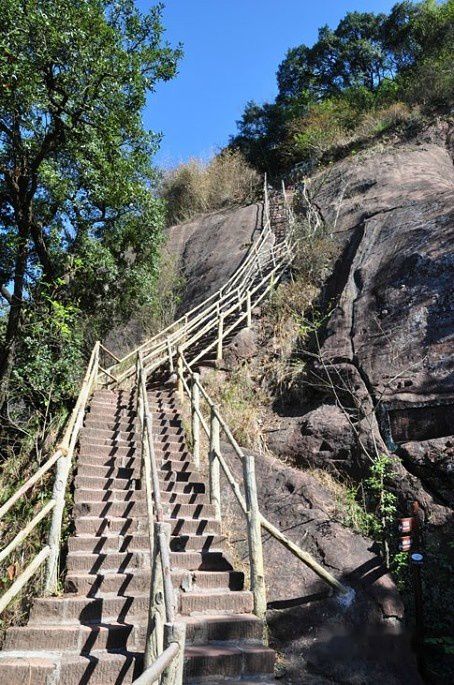 10点半到了“丹霞山游客中心”,现在的门票价格为平时100元,节假日120元,60岁以上老人半票。购好门票后,在“游客中心”旁的餐饮店吃了午饭。进入景区大门后,再乘景区交通车到阳元山,在阳元山景区外就能看见几排民房,我们找到了在网上预定的“鸿福楼酒店”,这酒店还算干净,价格也比较公道,老板人也热心,还给我们手绘的游览示意图。安放好行李后再乘景区交通车,前往长老峰景区游览。进入长老峰验票处,可见二个进口。一个是上长老峰,另一个是去翔龙湖。我俩去左边的进口,先上长老峰。沒走多远就到了半山亭。在半山亭又分为二条路,一条去锦石岩寺,一条去观日亭。我们先去锦石岩寺,一路上经过梦觉关﹑幽洞通天﹑百丈峽﹑天外一线﹑最后来到锦石岩寺。这一路的台阶还算平坦,原路返回后往左去摩崖石刻群﹑福音峽,再向上的路就开始陡峭了,有的地方甚至要手足併用,尤其是在御风亭上丹梯铁索处,那里的坡度在七八十度,可想而知要登上去有多险。我俩慢慢地向上攀登着,经过努力终于来到长老峰的至高点观日亭处。站在山顶﹑放眼望去颇有“会当凌绝顶,一览众山小”的感觉。在山顶上休息一会继续向阴元石走去,从观日亭去阴元石可从双喜栈道下去。这里是沿着北面山体开凿的栈道,又长又陡。俗话说“上山容易,下山难”,我看这里是“上山难,下山更难”一路让人腿不由自主的发软 。下到阴元石处,看见神奇的阴元石。接着继续往翔龙湖走去,路上经过仙居道观﹑玉带桥,看看天色还早,于是我俩沒去游船码头,而是选择了步行去九龙亭的方向去出口。下午四点回到长老峰验票处,再乘景区交通车返回酒店。整个游程花了5个小时,回到旅店后洗了个澡,休息一会,再下楼用餐。餐后早早的休息了。