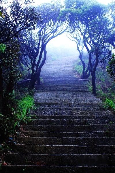 莽山有四个景区,门票在野导的帮助下便宜了10块,70一人,60一台车。我们先去天台山,那里的路很像玩头文字D,好多90度的弯位。越到山上,雾越大,坐在靠路边的车位,越觉得恐怖,下面什么都看不到了,已经成仙。到了停车场发现都是粤A粤B粤S,贪玩的广东人。总是觉得眼前的东西蒙查查,好大的雾。上到山顶看见远处的云海,难以形容的震撼。若隐若现的夕阳,铺上一层金光。观景台已经整个笼罩在雾中。三个无所事事的小朋友抱了块大石头扔下峡谷……厉害!下山的时候,看见火烧云晚霞,很漂亮。而最令我意外的是看见彩虹。每次看见彩虹,就好像看见上天给我的暗示:风雨过后总会有阳光的。整个人精神晒!第二天早餐后继续到莽山游玩,一直都在下雨,不过山的天气很奇怪,这边天晴那边下雨,我们还是进去看看人品。开车到将军寨,这个寨本来叫鬼子寨,野导说:“因为我们的将军石在里面啊,所以改了名叫将军寨。”我们一头雾水:“哪个将军死在里面啊??”结果,我们的人品没有感动上天,一直都在下雨,只好打到回府了。刚离开莽山,天就开始放晴了,这个这个……!!!!!