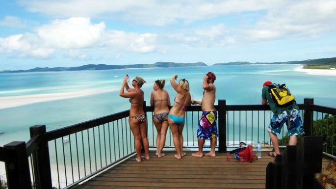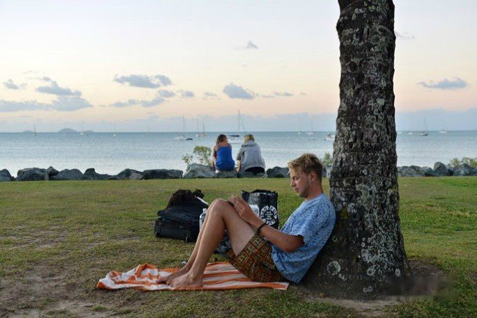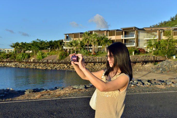 如此良辰美景,无奈孤家寡人,于是借来林德曼岛的帅小伙的背影假装情侣,倒也赏心乐事自得其乐了。