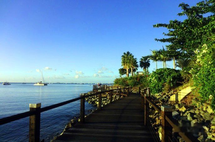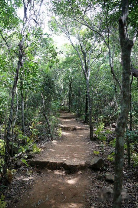 从沙滩上走上来,人们大都是打着赤脚,山上小径贴心地铺了木地板。
