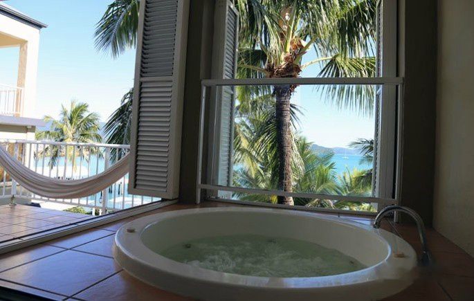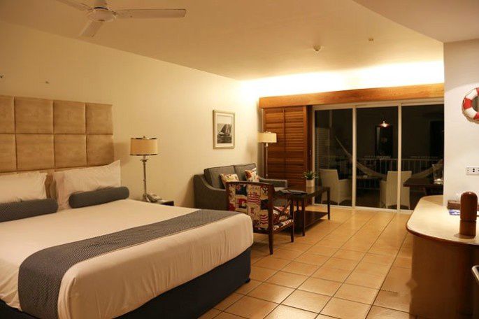 入住海边的珊瑚海度假酒店(Coral Sea Resort),二楼这间便是我住的房间,可以在摇床上惬意看看海晒晒太阳,如果不怕走光,还可以打开两面的窗子,面向大海泡一个阳光按摩浴。