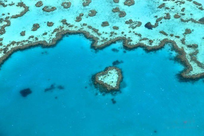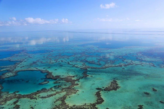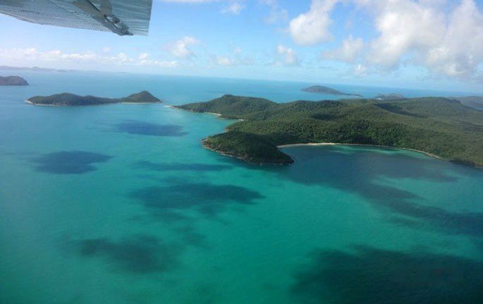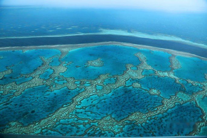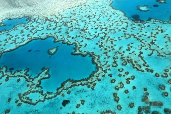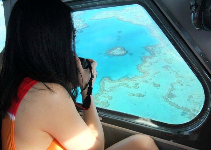 一个晴天丽日,飞机从林德曼岛飞向让人神往的大堡礁。在岛的上空可以看到环绕林德曼的码头和海岸的也都分布着斑斓的珊瑚礁群。