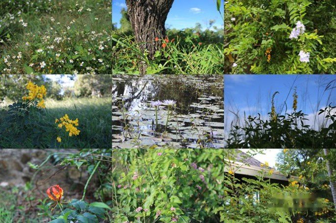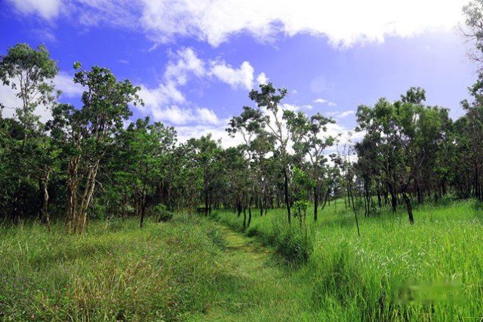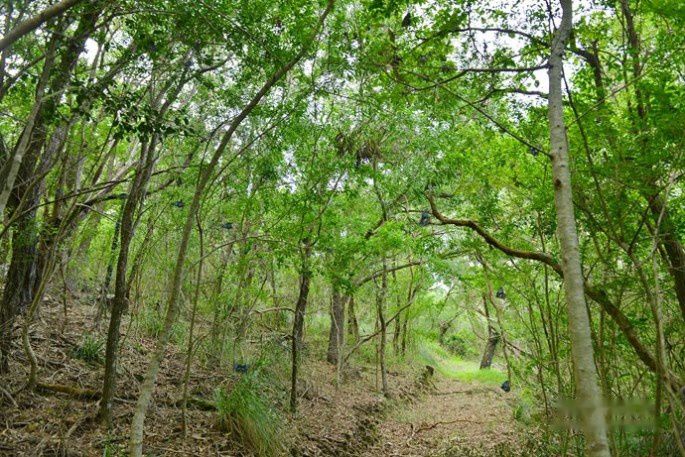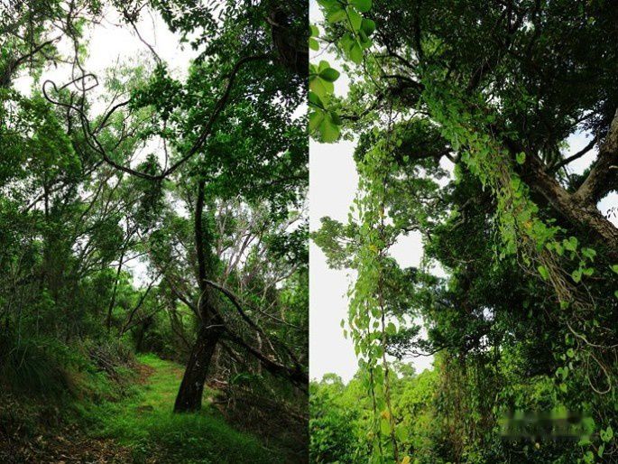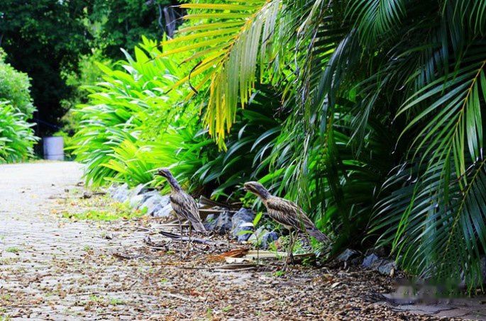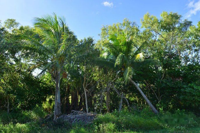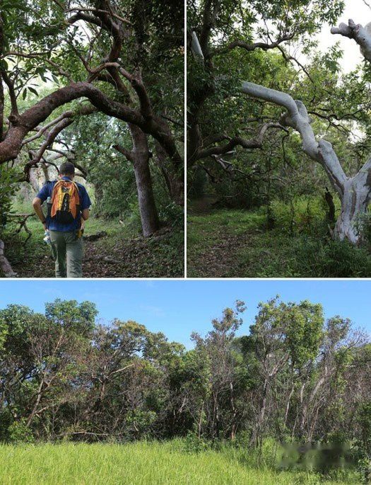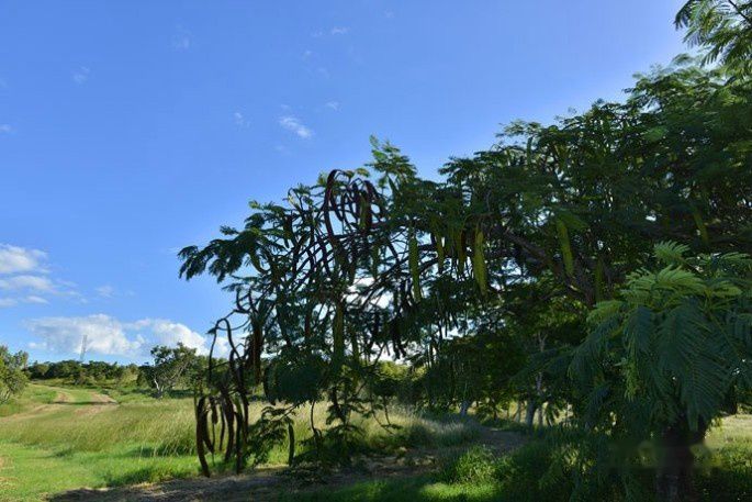 野生的椰子树和不知名的“豆荚”树肆意的生长。