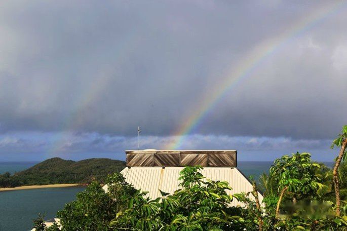 海岛上的雨颇有些情绪化,来去匆匆,暴雨来得急切、热烈,酣畅淋漓地狂泻了一阵子以后,浮现出双重的美丽彩虹。