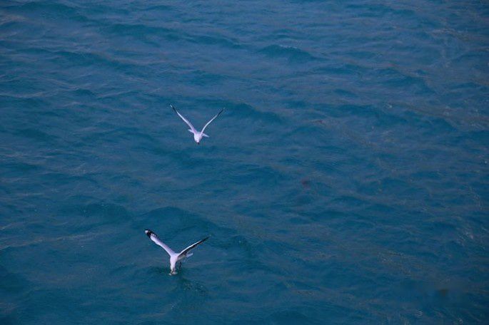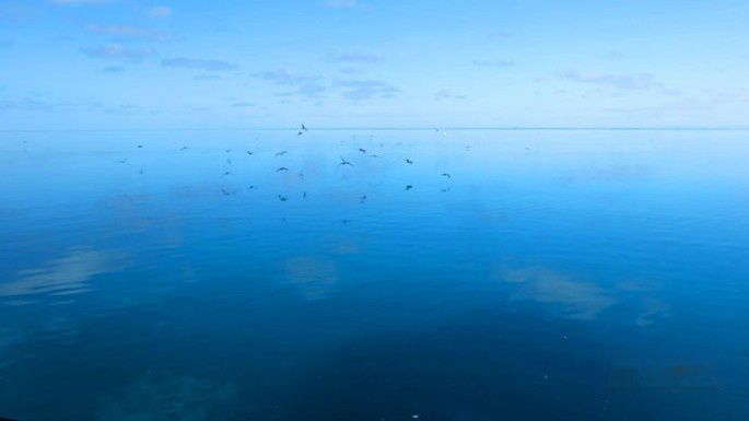 依依不舍地离开,潜水平台重新变成海鸟的栖息之所,好一幅海上水墨风光图。