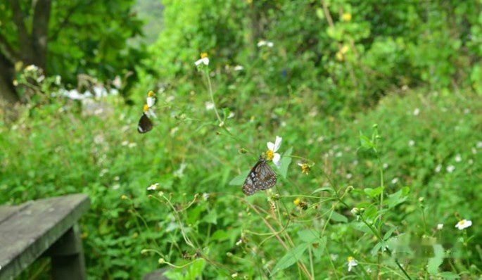 森林公园有一片神秘的蝴蝶谷,成千上万的蝴蝶在这里聚居。不过这些蝴蝶大都是蓝黑灰等颜色,与周边的绿色植物浑然一体,利用大自然的颜色巧妙地掩护着自己。