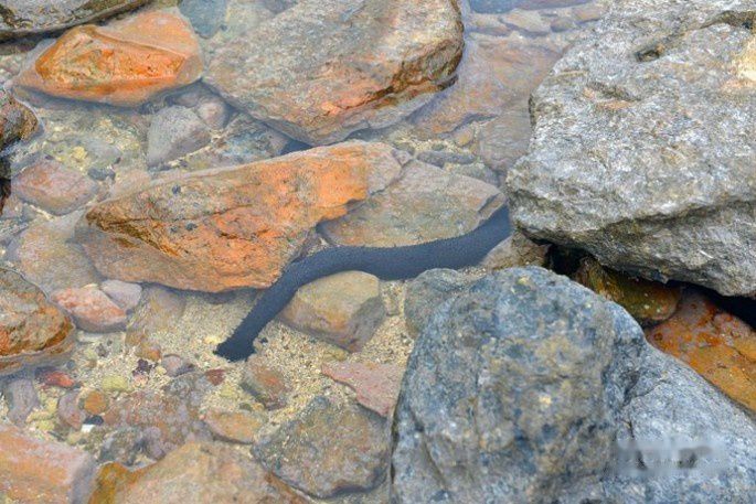 这一团黑黑的东西竟然是成群结伴的小鱼,近看在黑色边缘的地方一些小鱼飘散开来。