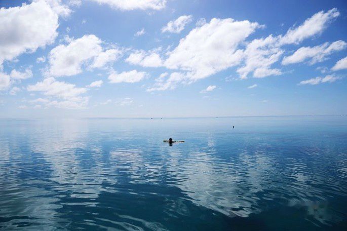 它的特别在于,如此单薄的一叶小舟,载着你划入大海之后,茫茫海天环绕,前所未有地全身心融入海洋的怀抱,大自然的宏大和自己的渺小形成鲜明的对比,既孤独又宁静,就算是乘坐快艇航船,也没有这样的感受。