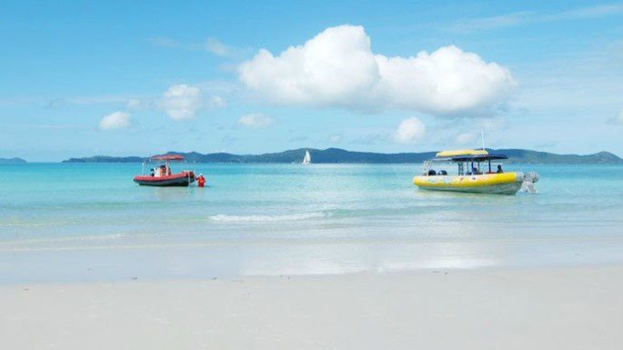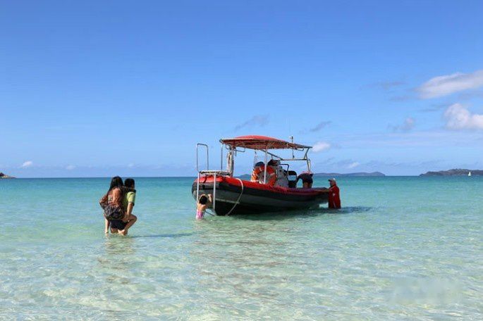 接下来就是到与白天堂沙滩衔接的澳洲第四大美景细希尔湾了,由于白天堂沙滩延绵七公里,靠自己走就太远了,因此我们要乘坐小船到希尔湾。