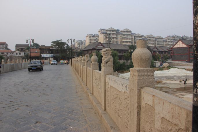 现为七孔石桥,长 65.3 米,面宽 8 米,高 7.9 米,拱跨度宽 5.4 米。
