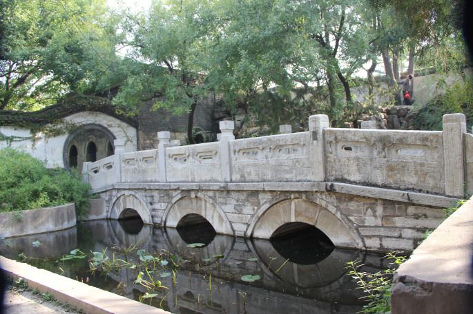 三峰假山是由明末清初著名的叠石家张南垣设计督砌,是我国唯一保存完好具有康熙风格的一座人造假山,她浓缩了九州山川秀水,石峰参差,亭台错落,溪流蜿蜒,瀑高潭深,具有极高的艺术和史料价值,被誉为国宝