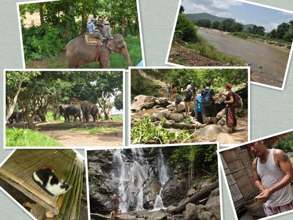 Day3:Trekking( 骑大象-->林中徒步-->瀑布下泡水-->民族村--->橡皮艇漂流+竹筏漂流)