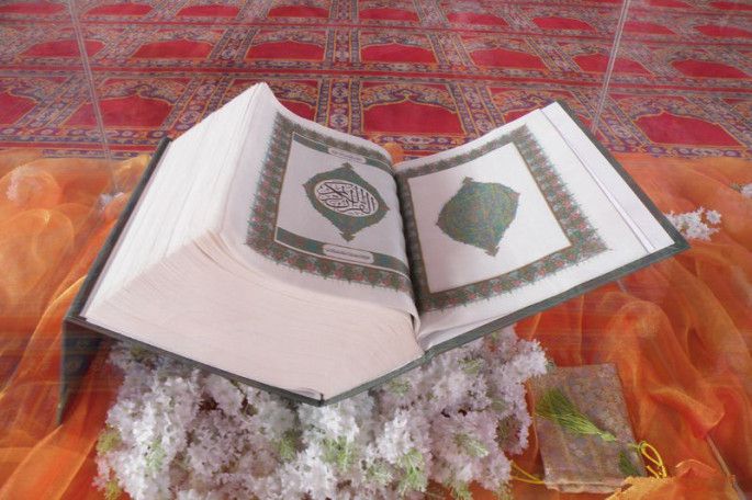 室内正中间放着一本丝绸做的《古兰经》,这是伊斯兰教徒的圣经。