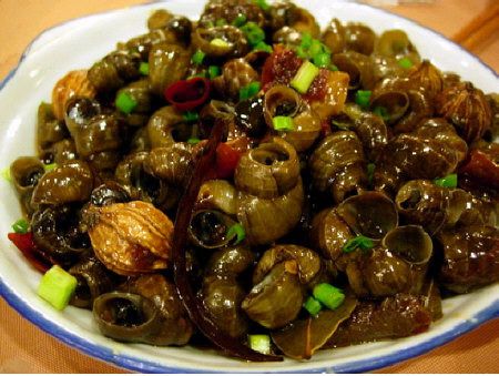 婺源炒螺丝:因为婺源境内河、溪水质优良,没有工业污染,所产之螺丝,质地高出田螺一筹,但比田螺个小些。肉青白细嫩,且无泥腥气。