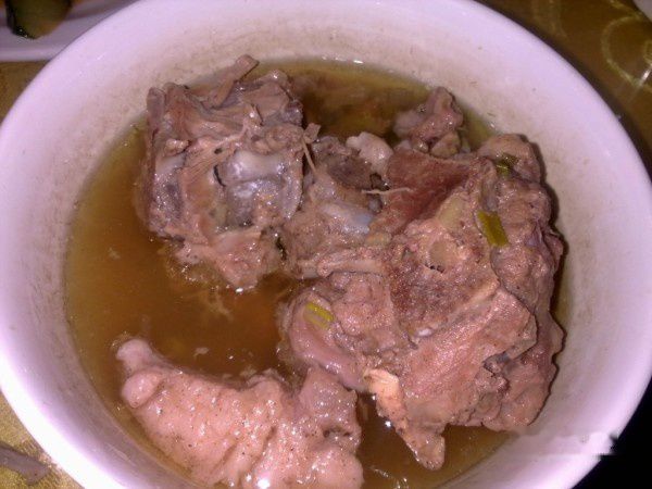 抽支烟,喝点茶,聊着天等着吧,时间到,每人一份蒸羊羔肉,几盘凉拌素菜上来了,羊羔肉用碗盛,碗不大,连骨带肉3,4两,没有任何作料,只有漂浮在汤面的油珠珠,看上去平淡无奇甚至有点难看,远没有川菜那般带点艺术性,用筷子轻轻拨开油珠珠,一股诱人的香味扑鼻,夹起一块,骨头和肉居然慢慢的分开了,吃上一口肉,那才一个滑,嫩,喝上一勺汤,汤下肚齿却留香,再吃,有点腻,吃上几片蒜泥黄瓜,清爽之味顿生!请教老板如何制作,老板也很大方,先说选料,做这道菜的羊羔必须是2个月大,体重30多斤的,这样的羊羔肉才是最好,洗净后,用小碗盛,不加水,旺火1小时起锅食用,那个汤全靠水蒸气凝聚,这样才能保证羊肉的原味,至于蒸肉时还要加点什么作料,老板只笑而不答了。这个是秘密,理解,也不再追问,还是赶快把这美味下肚才是正事哦。