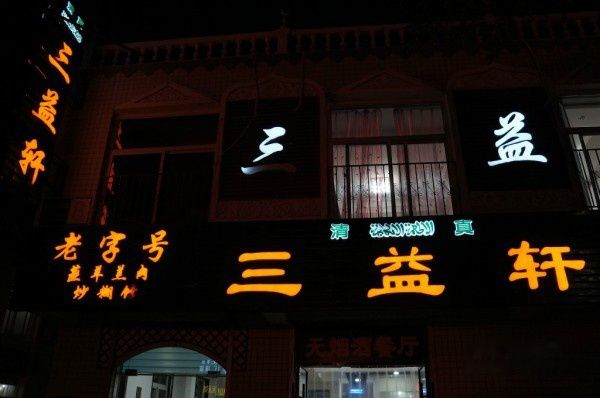 老毛手抓吃不上,咱去吃蒸羊羔去。感谢党,感谢政府,如火如荼的安居工程,面子工程+老街老巷却不见了,那些小吃老店也不知影踪。东问问,西打听,还让我问到一家百年老店三益轩,而且就在距我所住酒店不远处的新月广场美食城里。