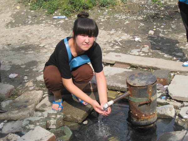 回宾馆的路上,遇到一个当地人喜欢光顾的温泉井,很多当地人在接水回家给小孩洗手洗脸,路过的当地人也在这停留一下,洗洗脸冲冲脚。这是一位美丽的哈萨克族姑娘!
