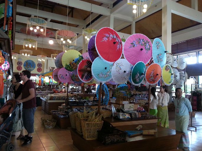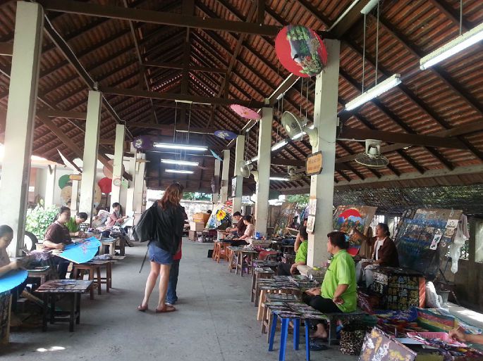 清迈山甘烹工艺品街,约9公里长,有着数十家从事不同工艺品生产的传统工厂,纸伞制作从捣纸浆开始,所有工序都是最原始的手工。