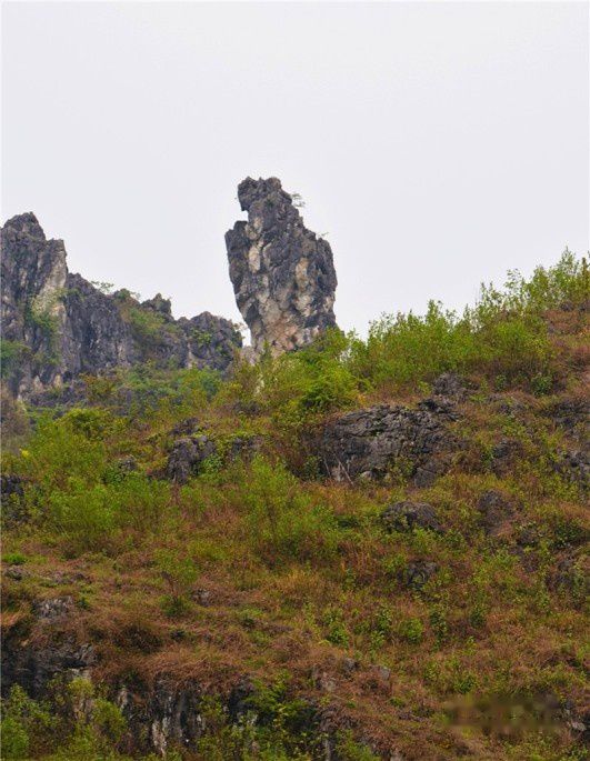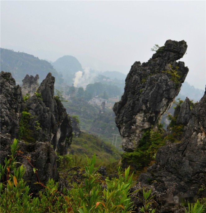 下午1点多,我们往回走,第四站到了竹林堡石林。在公路上走,就能看到许多景色。