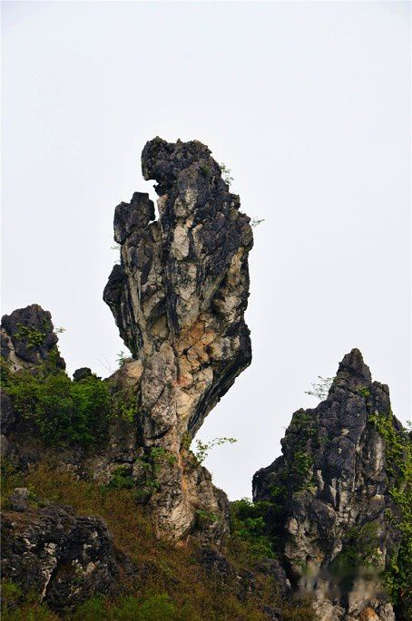 像一座布满假山怪石的浓浓缩盆景花园,内有“少女怀春”、“天狗盼月”、“海豚望天”、“将军出征”、“唐僧西行”、“母子情深”等栩栩如生、惟妙惟肖的石林景观,还有一棵棵擎天石柱,一尊尊奇形怪石,更象一座千姿百态的盆景园,给人留下无限的遐想。