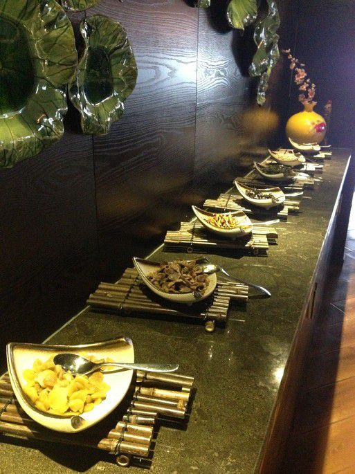 在大厅三三两两同事坐着聊天。服务员端来特色香草茶,喝着爽口,有点甜味,服务员说是由柠檬、玫瑰、薄荷、甜菊冲泡而成。