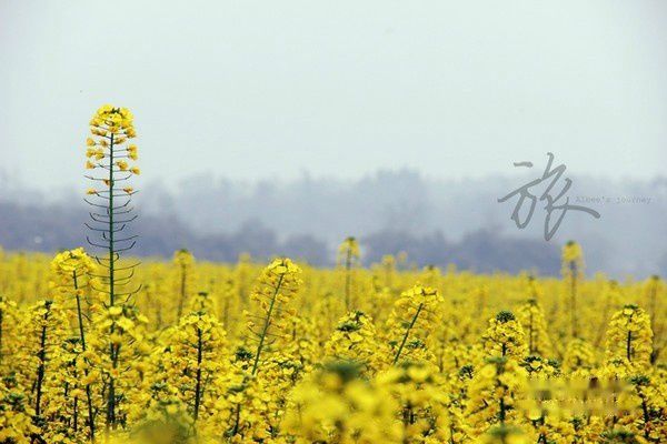 下了直达的车之后,会看到一大片金灿灿的油菜花地。