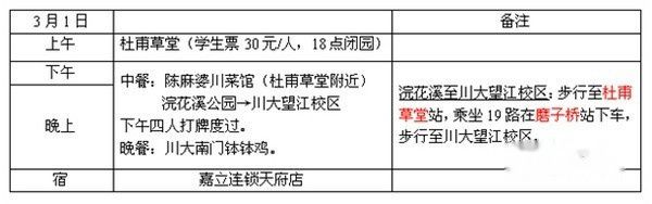 3. 1 第六天 杜甫草堂→陈麻婆川菜馆→浣花溪公园→四川大学望江校区