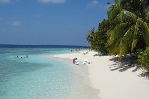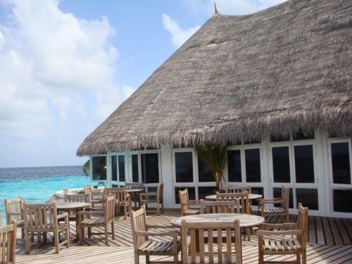 岛上是九点用早餐,北京时间都是十一点了。早餐是西式自助餐,有各种面包,水果沙拉。还有肉类,饮料。。。挺丰盛的。我最喜欢吃师傅现做的鸡蛋饼,两只鸡蛋搅拌后放很多当地的调料,烤出来很香。美美的饱餐一顿后,我带了几片面包去海边喂鱼。海边有好多鱼群,撒一点面包,立即涌过来好多,不过离沙滩近的鱼群都很小。水性好的人都游得远一些,他们说有好多色彩斑斓的大鱼群,非常漂亮。真是可惜啊,我不会游泳。他们还去租了潜水用具,潜到水里看珊瑚群。我们这个岛有片很美的珊瑚群。在珊瑚群里又有五彩的鱼群。所以客人们每天都要出去潜水好多次。乐此不疲!