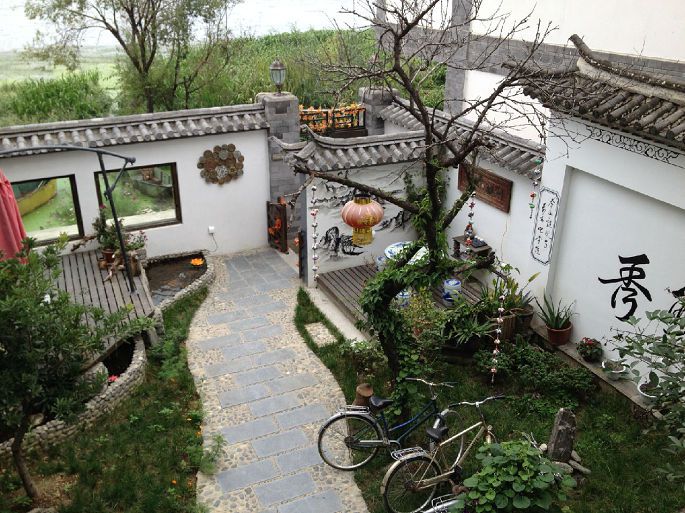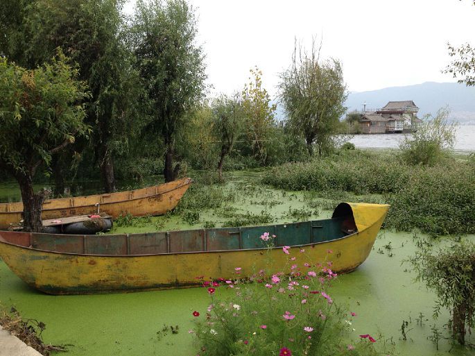 这是客栈门前的小船,我们就是坐着它去游的洱海,下面的图片是客栈的小院,真的很美很别致,看得出老板的用心,我住的是二楼的海景房,在房内就可以看见洱海的美景。