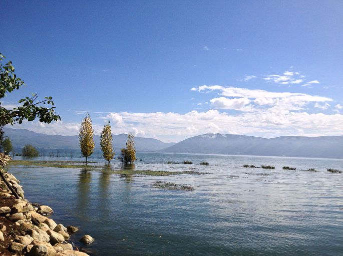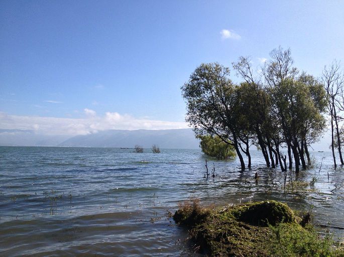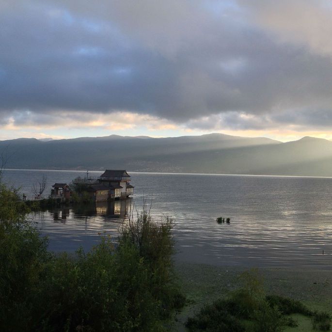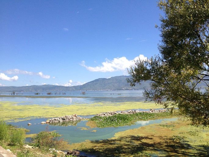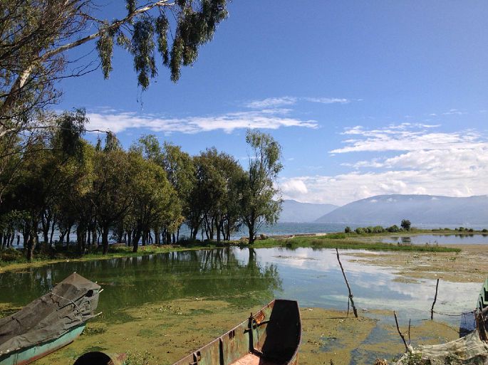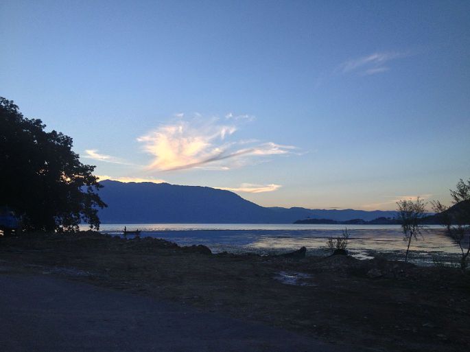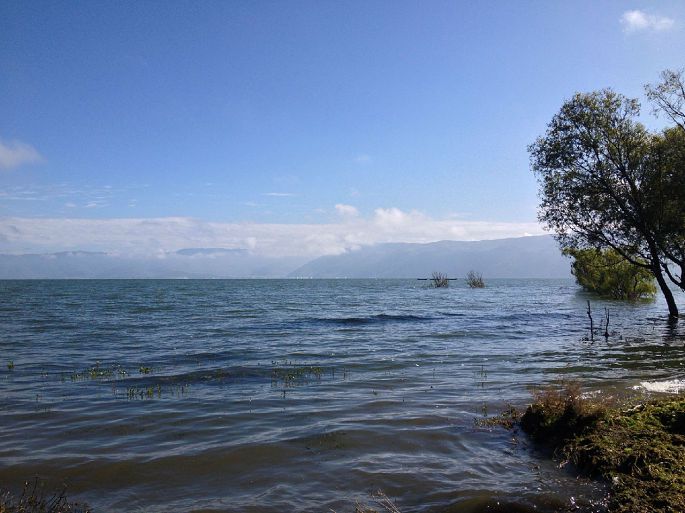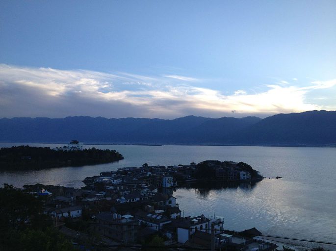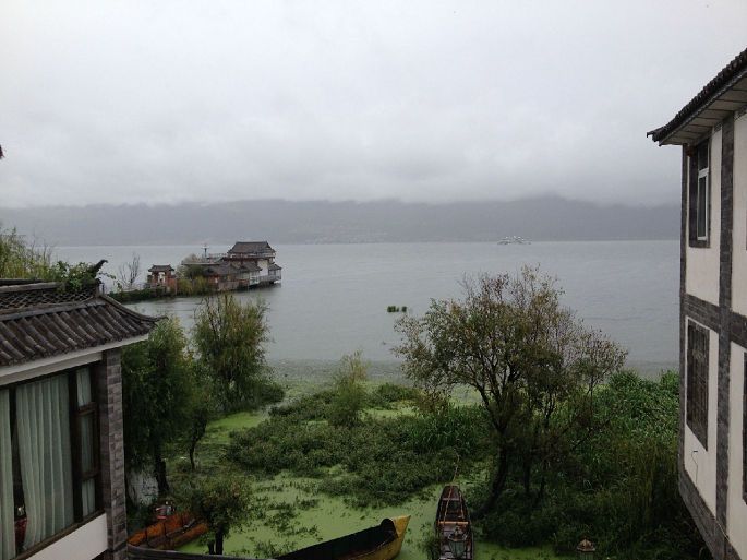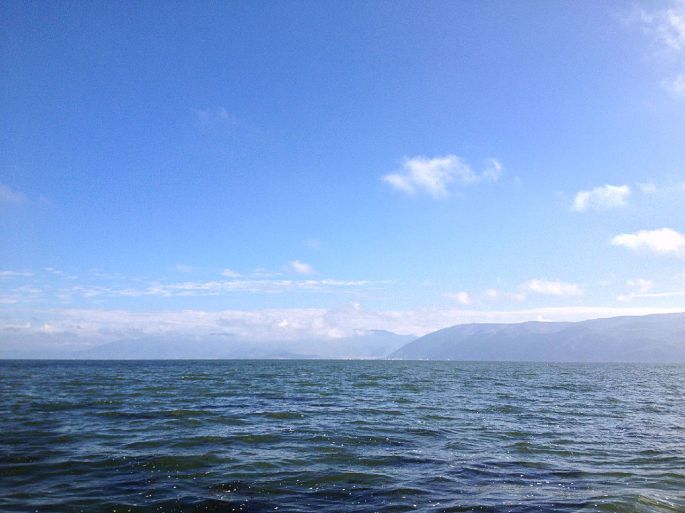 第三天一早收拾好行囊去搭了去才村巴士,实际是丽江-大理的,才村-大理古城只有4km路,入住在北京出发前在网上订的豌豆客栈,到达客栈已经中午了,客栈本来是可以免费从客车站接站的,由于我的功课没有做好,我在才村口叫做南国城的地方下车后花了20元打车前往的,不过老板和住客都很热情,一进门就邀请我一同用餐,感觉就像回家,差点把我这个不敢出来的人感动到眼圈发红,下面就是洱海的河虾和弓鱼,纯野生的,新鲜美味,几个叫不上名的蔬菜。这餐饭是三位来自深圳的美女去市场买来做的,这家客栈可以自己做来吃,也可以与站内工作人员搭伙,因为我一个人,当然喜欢搭伙了,午饭后,和深圳的是三位美女去坐了渔船出海,由于那天有风,没能尽兴,可是我们仍然很享受!