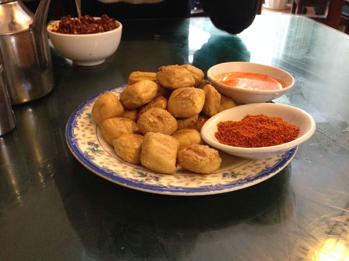 到达客栈已经是中午时间了,稍作整理便出来吃饭,到云南一定要吃过桥米线,于是问了老板哪里做的比较正宗,丽江古城的第一餐就是孟自过桥米线,还有炸臭豆腐了。