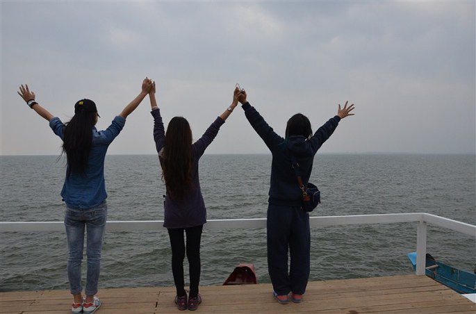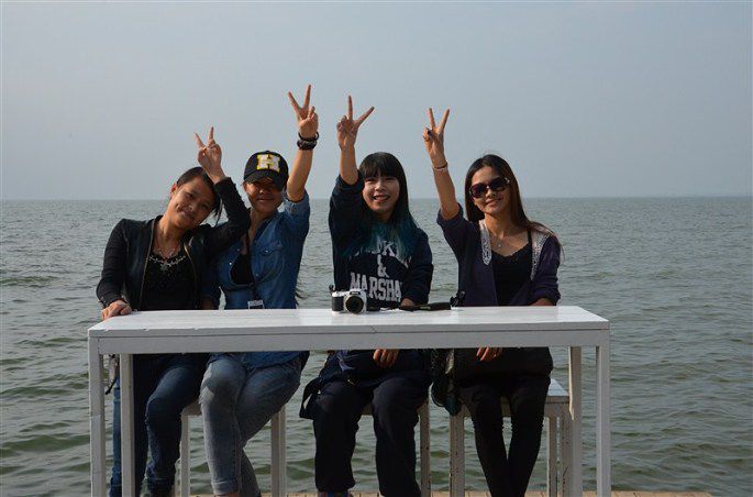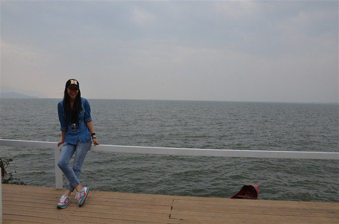 坐了大概一个小时左右,我们就去洱海边骑车吹海风
